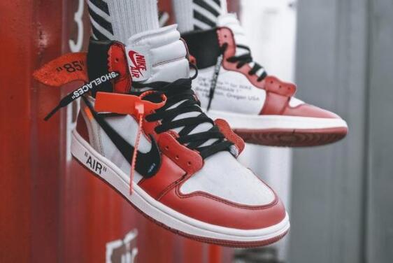 除此之外,在街上時常也會看到這樣沒剪扎帶的球鞋,有部分鞋迷不剪這個扎帶也成為了一種潮流趨勢。前不久off-white聯(lián)名NIKE的AJ 1鞋款也是有著扎帶,為昂貴的聯(lián)名鞋款提供辨識度。