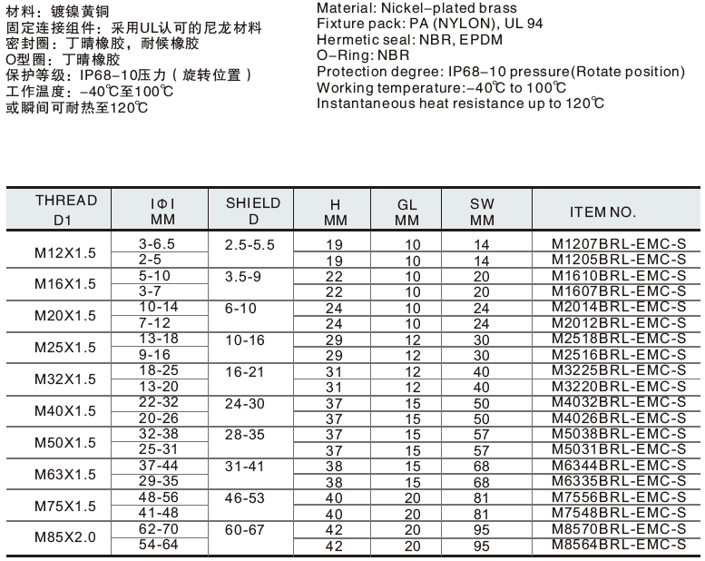 金屬電纜固定頭 >> M加長型屏蔽金屬電纜固定頭-S型-M-LENGTH-EMC-METAL-CABLE-GLAND-S-TYPE