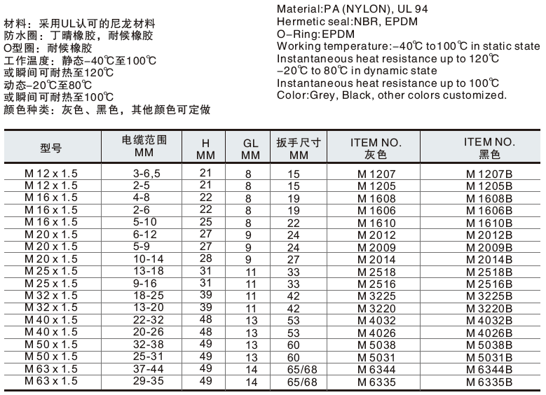 塑料電纜固定頭 >> M型電纜固定頭-M-TYPE-NYLON-CABLE-GLANDS