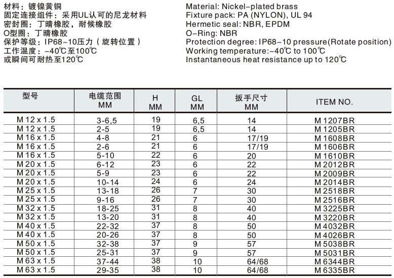 金屬電纜固定頭 >> M型金屬電纜固定頭-M-TYPE-METAL-CABLE-GLANDS