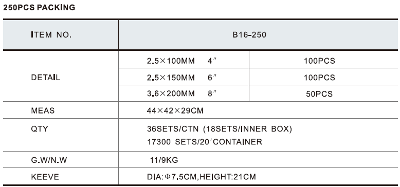 包裝款式B系列 -250PCS PACKING