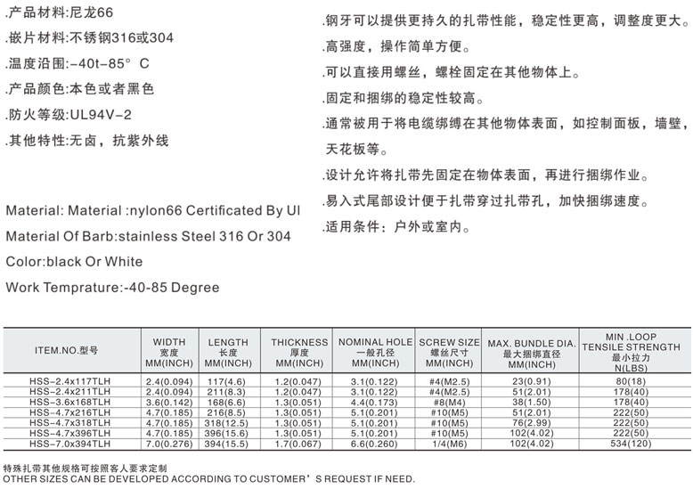 尼龍扎帶系列 >> 固定孔式尼龍鋼牙扎帶